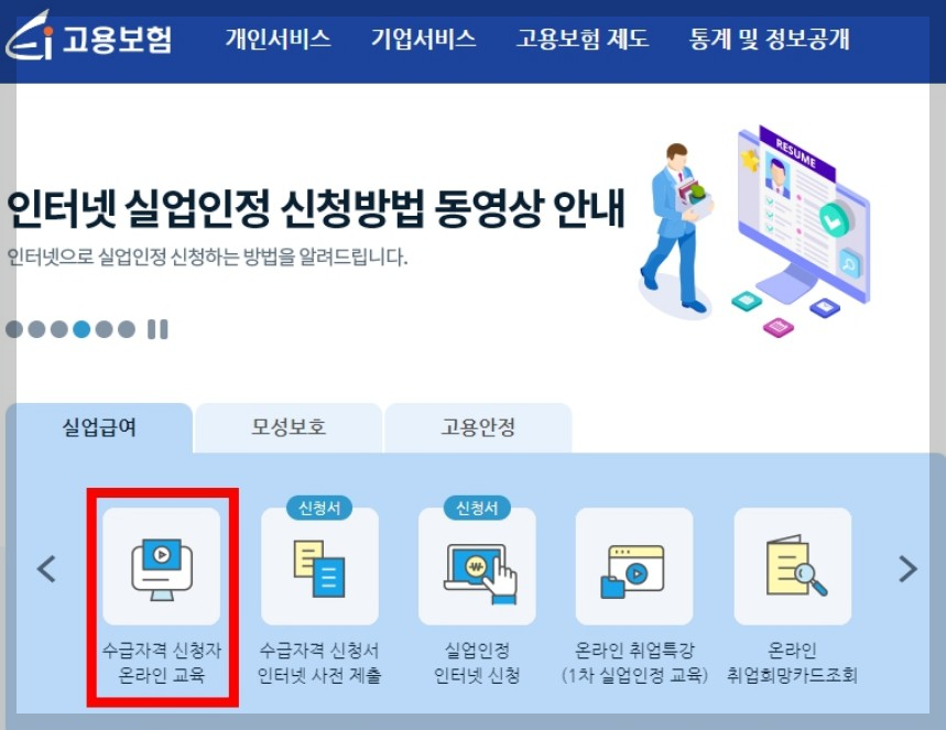 4. 수급자격 신청자 온라인 교육 수강 (고용보험공단)