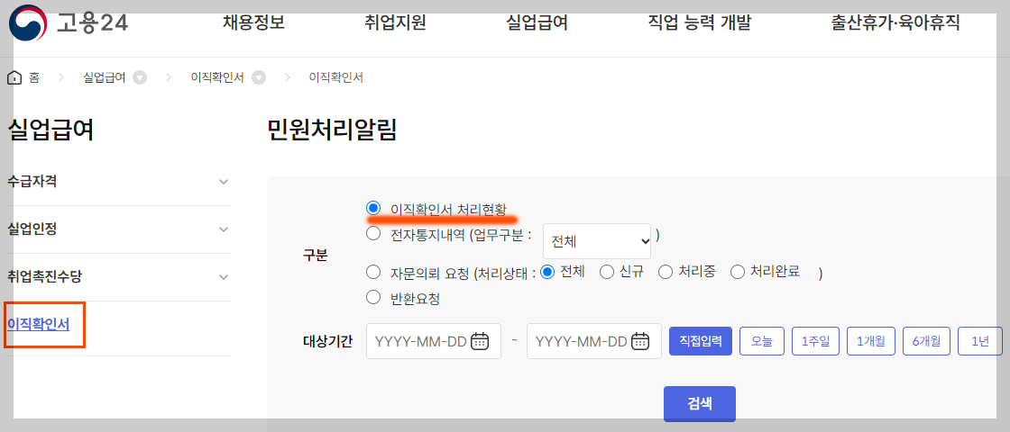 - 고용보험공단 사이트에서 이직확인서 처리 여부를 조회할 수 있습니다.
